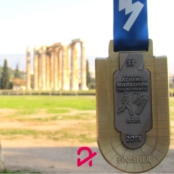 Uma medalha que representa 42Km de pura emoção, muito calor, muita história, com cada KM com marcação permanente e muita superação, 42Km correndo juntos!! E não foi qualquer Maratona, foi aonde tudo começou! Percurso duro mas incrível! Essa prova possui um clima muito especial, logo de madrugada os ônibus saem da região central de Atenas e levam todos os corredores até o estádio olímpico da cidade de Maratona. Curtir o percurso e ver o nascer do sol nesta região tão histórica não tem preço! Essa foi a minha 5ª, segunda da Dani! Que venham os próximos desafios!